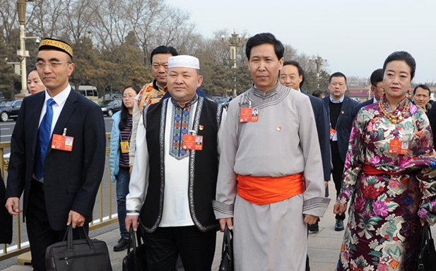 2018年3月5日,青海代表团步入人民大会堂会场(右二为青海省海西州州长孟海)