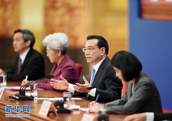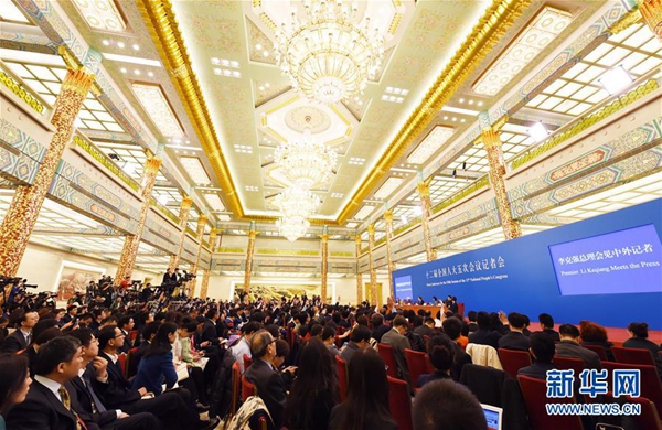 3月15日,国务院总理李克强在北京人民大会堂与中外记者见面,并回答记者提问。 新华社记者邢广利摄