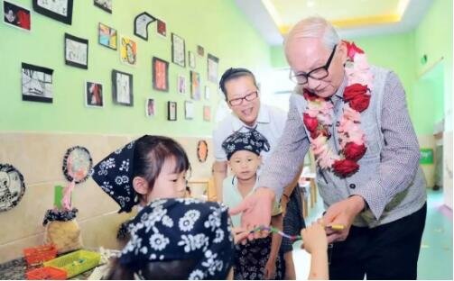 △ 浙江省绍兴市丰惠镇一位港胞乡贤张杰来到当地幼儿园进行参观及捐助活动。