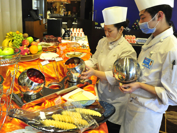 02-2018年3月1日,全国两会新闻中心,女厨师为记者们准备餐饮。董宁摄影