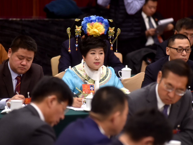 07-2018年3月8日,十三届全国人大一次会议黑龙江代表团举行全体会议。全国人大代表孙艳玲。董宁摄影