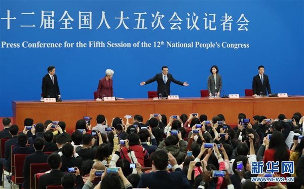 3月15日,国务院总理李克强在北京人民大会堂与中外记者见面,并回答记者提问。 新华社记者邢广利摄