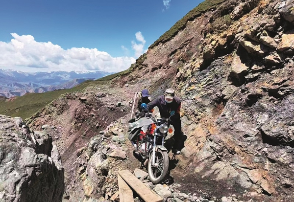 护林员巡护途中山路崎岖