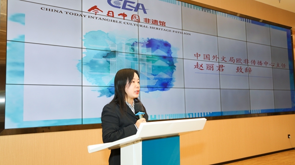 赵丽君表示,今日中国会客厅与今日中国非遗馆是中国外文局欧非中心基于《今日中国》杂志七十余年国际传播积淀而倾力打造的中外文化交流品牌项目,也是对国际传播进行的一次战略性探索与升级。今天揭牌的今日中国非遗馆(北京三里屯),它不仅是一个静态的展览空间,更是一个集展览、交流、教育、数字化体验于一体的非遗国际传播创新平台,也是我们国内布局的“核心枢纽”与“样板间”,未来这里将常态化、高频次地开展非遗主题展览、大师技艺展演、中外文化对话以及公共教育活动。我们的目标是让每一位走进这里的国际友人、各界公众,不仅能“看到”中国非遗,更能“触摸”到中国非遗的温度,“听懂”非遗背后的故事,进而增进对中华文化的热爱、对中国的美好情感。