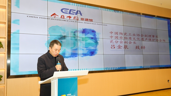吕金泉表示,陶瓷,是泥土与火焰的永恒对话,更是中华文明最温润的注脚。瓷器以它“声如磬、明如镜、薄如纸、白如玉”的风骨,成为世界读懂中国的第一张名片。今天,今日中国非遗馆的落成,让散落于民间、沉淀于岁月的陶瓷技艺,有了一处可回望、可触摸、可生长的精神家园,我们期待与在座的各位,以及全球所有热爱文化的朋友们携手同行,共同探索文明互鉴的无限可能,共同绘制美美与共的文明画卷,为中国走向世界、世界读懂中国,注入更加深厚而持久的文明动力!