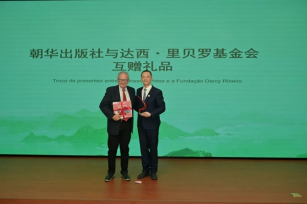 发布会上,朝华出版社与达西·里贝罗基金会互赠礼品,并向中国社会科学院拉丁美洲研究所、中国人民大学重阳金融研究院、北京交通大学语言与传播学院、对外经济贸易大学外语学院、北京外国语大学西葡语学院、北京第二外国语学院赠书。