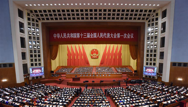 3月5日,第十三届全国人民代表大会第一次会议在北京人民大会堂开幕。 新华社记者 饶爱民 摄