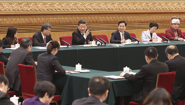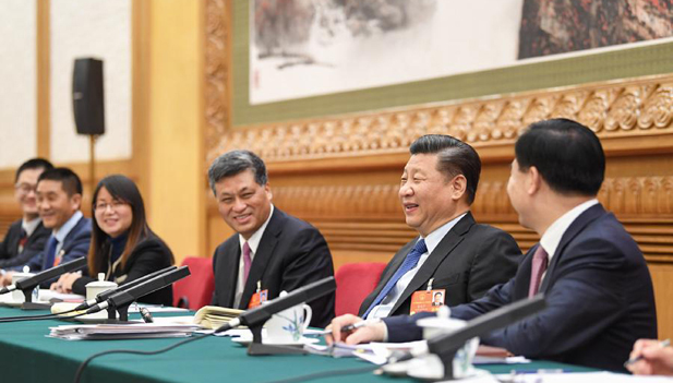 3月7日,中共中央总书记、国家主席、中央军委主席习近平参加十三届全国人大一次会议广东代表团的审议。 新华社记者 刘卫兵 摄