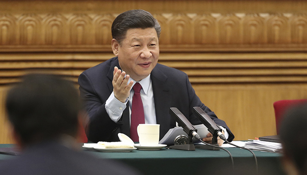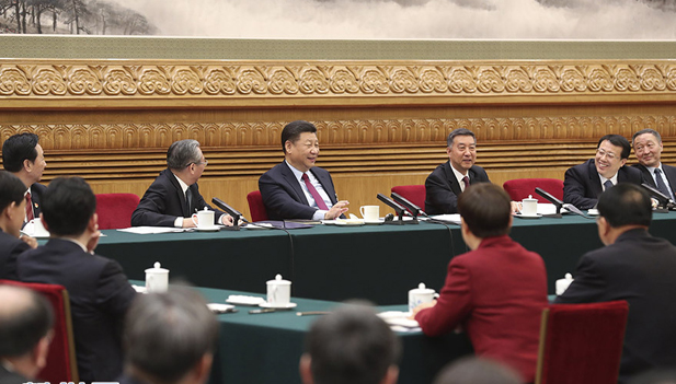 3月8日,中共中央总书记、国家主席、中央军委主席习近平参加十三届全国人大一次会议山东代表团的审议。 新华社发(盛佳鹏 摄)