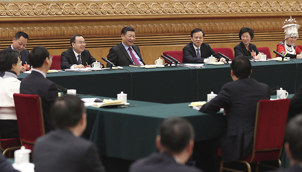 3月10日,中共中央总书记、国家主席、中央军委主席习近平参加十三届全国人大一次会议重庆代表团的审议。 新华社记者 谢环驰 摄