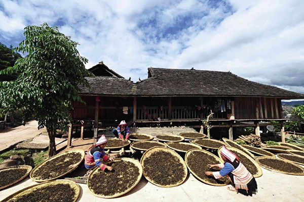 2015年9月18日,在云南景洪市基诺山基诺族乡洛特老寨,当地群众凭借种植茶叶、橡胶等,生活及居住条件得到有效改善