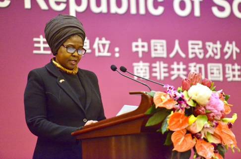 南非驻华大使多拉娜·姆西曼女士在庆祝招待会上致辞